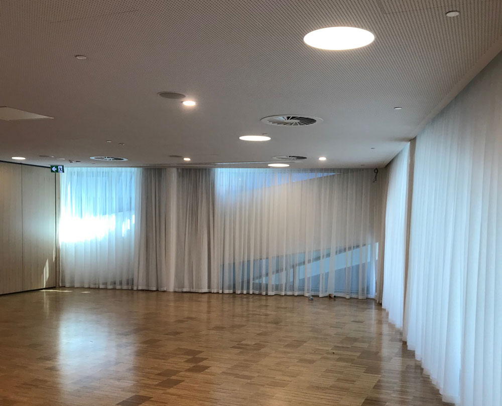 We have helped many clients with customised solutions and motorised products. Offering both single and double BMS motorised tracks, and fire rated sheer and block out fabrics.